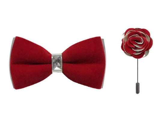 Brand Q Silver Two Toned Velvet Bow Ties with Matching Pin Lapels
