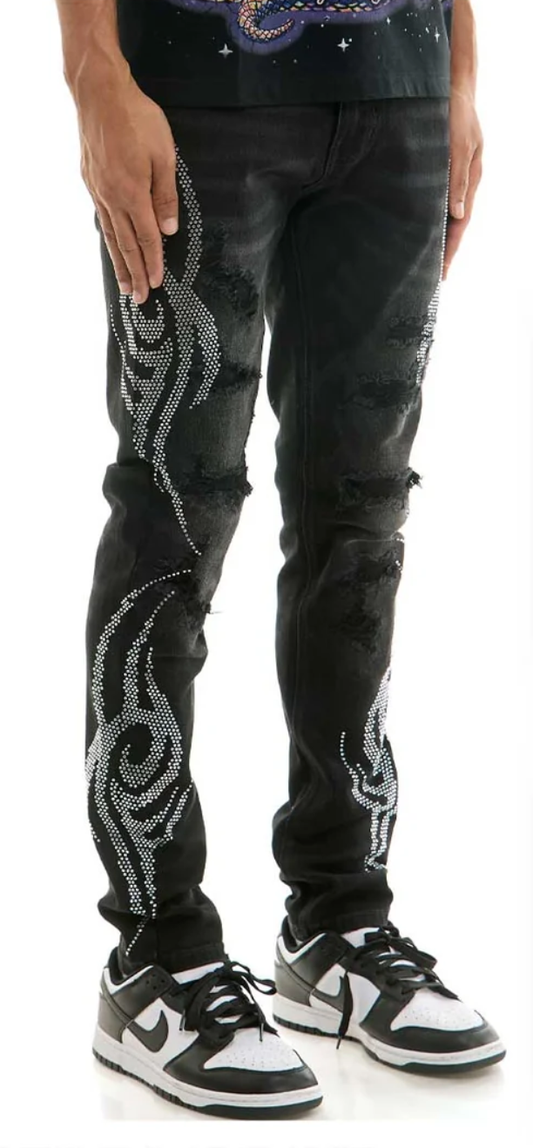 Rebel Minds Ripped and Repaired Twill Slim Jeans