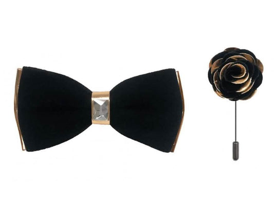 Brand Q Rose Gold Two Toned Velvet Bow Ties with Matching Pin Lapels