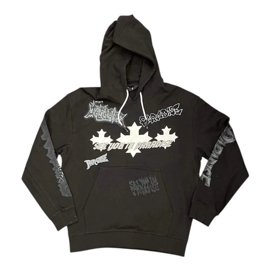 First Row Y2K Tribal Metallic Hoodie