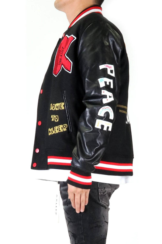 HALSTON Men's Melton Body with Faux Leather Sleeve Varsity Jacket