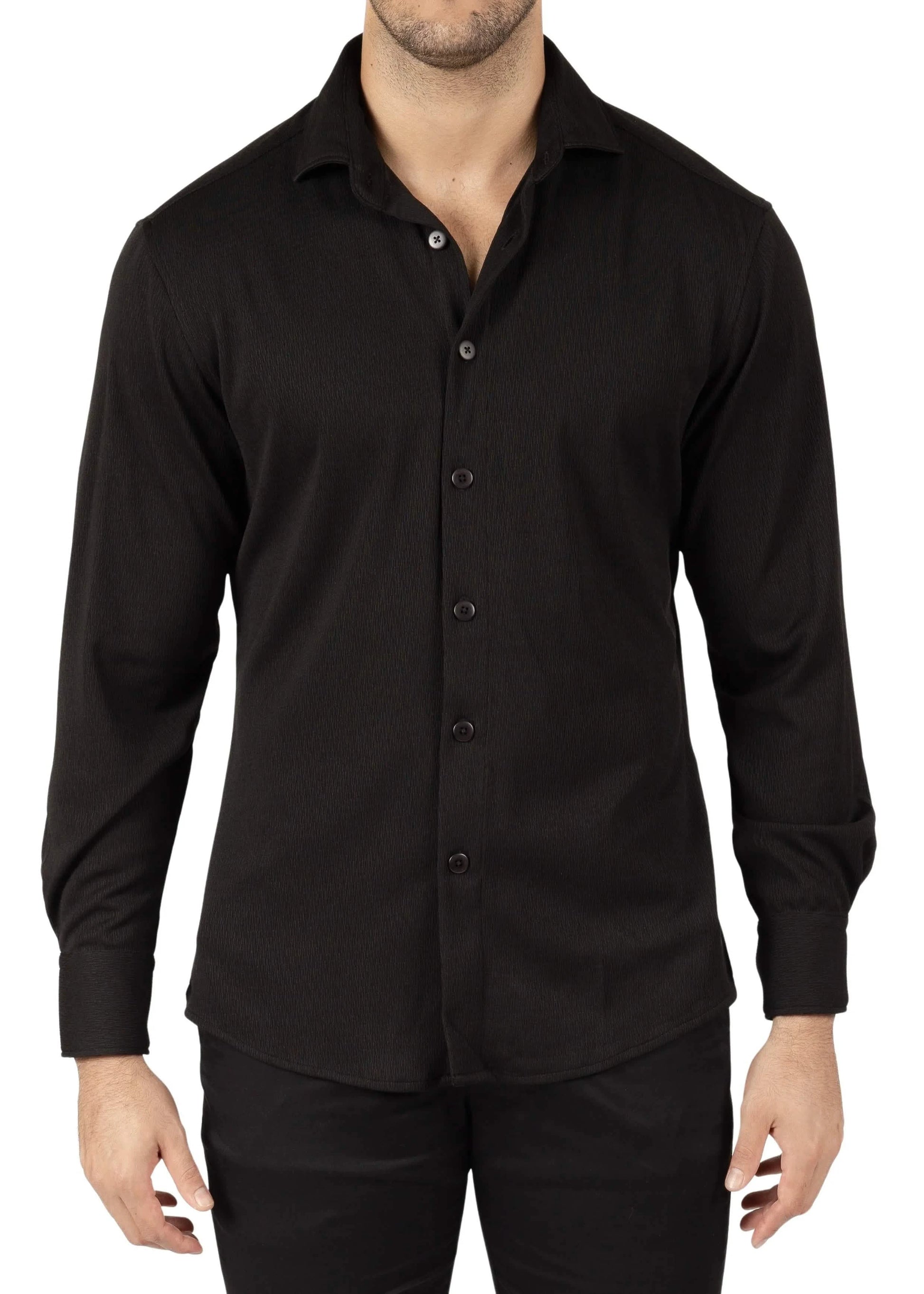 Experience refined elegance with the Bespoke Moda Button-Up Dress Shirt, featuring a tailored waist and distinctive contrast side gussets. Signature contrast buttons and detailed trim on the inner cuff, collar, and placket elevate its sophisticated design. Crafted with exclusivity in mind—fewer than 300 pieces exist worldwide—this shirt combines unique style with practical machine-wash convenience. Designed in Miami and imported, it offers a polished look for those who appreciate unparalleled craftsmanship.