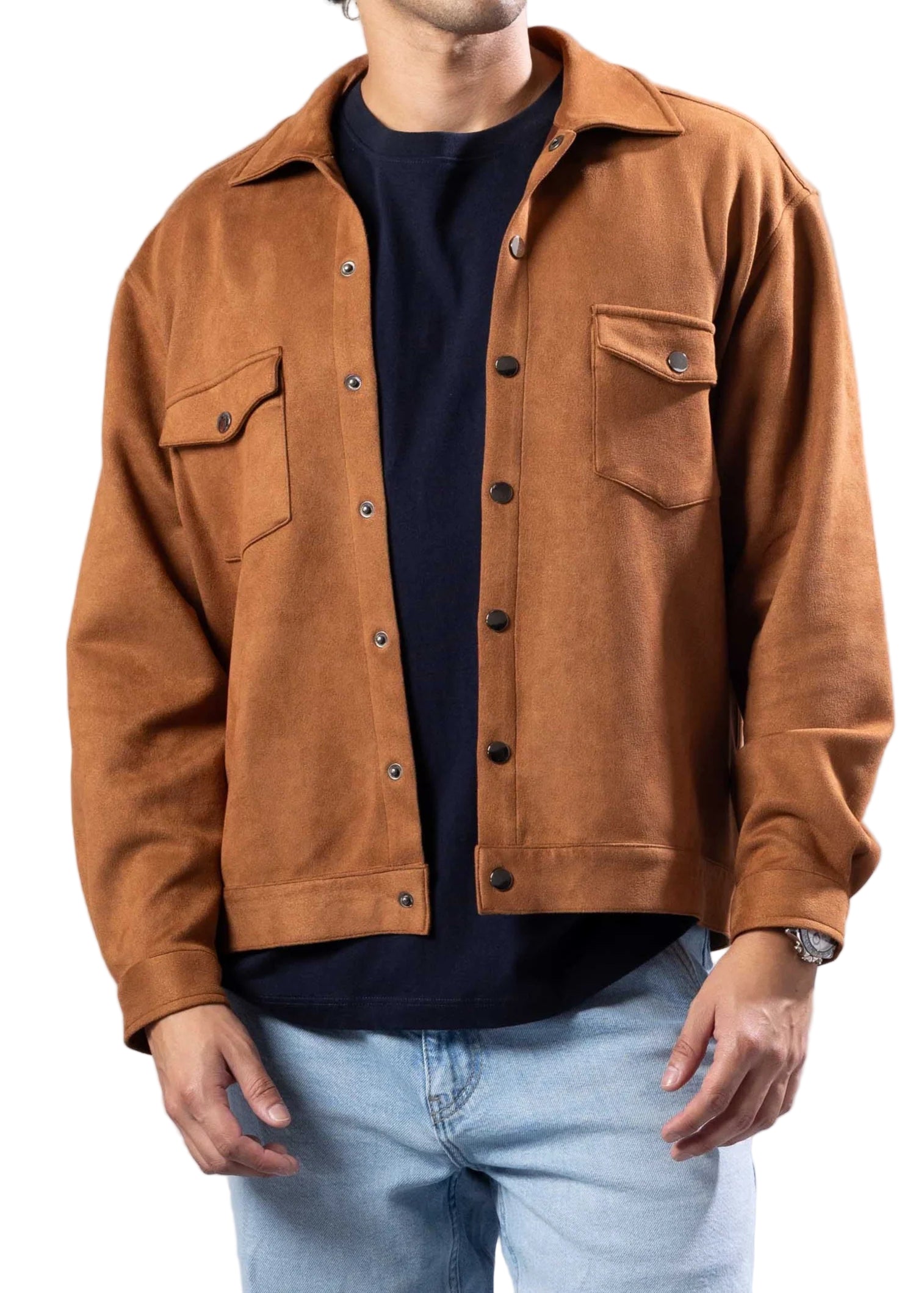 The Bespoke Moda Suede Shacket combines refined style with everyday versatility. Crafted with a luxurious soft suede-like finish and modern matte aesthetic, this piece delivers understated elegance. Snap-button closure ensures a sleek silhouette, while functional chest pockets add practical appeal. The relaxed overshirt cut makes layering effortless across all seasons, transitioning seamlessly from casual to polished occasions.