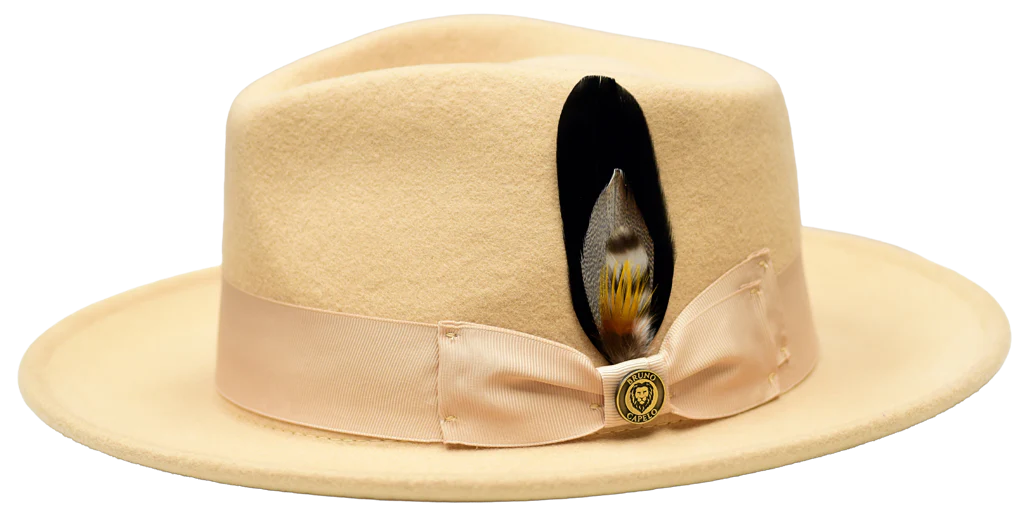 Elevate your style with the Bruno Capello Belair, a sophisticated fedora crafted from 100% fine Australian wool. Featuring a 2.5" raw edge snap brim and a distinctive diamond crown, this hat blends classic elegance with modern flair. The interior is fully satin lined with an elasticized cotton sweatband for comfort and breathability. A 1.5" grosgrain hat band and a subtle Bruno pin add refined details. Plus, a built-in sizing adjuster ensures a perfect fit, making this timeless piece both stylish and practical.