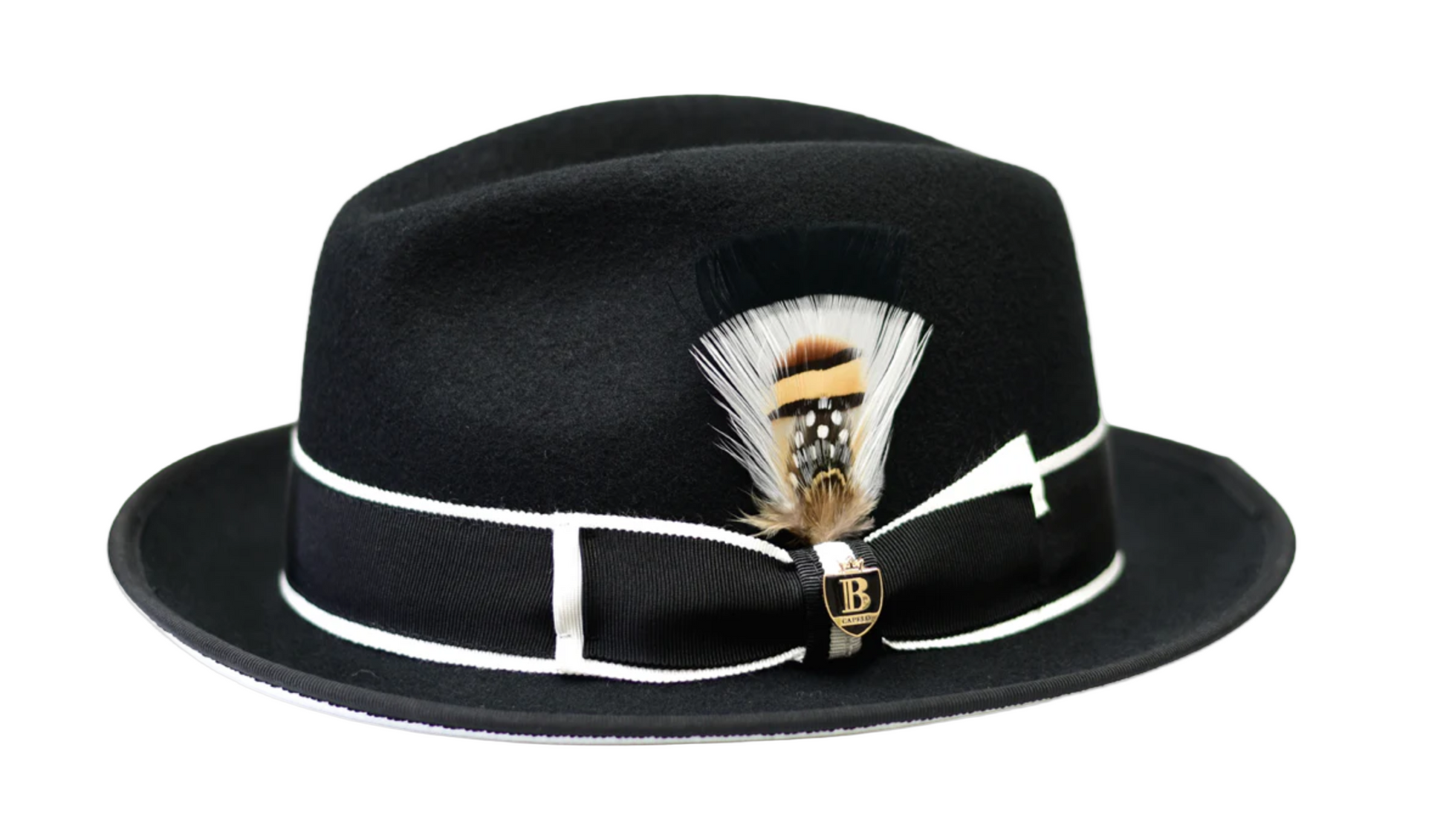 The Bruno Capelo Saverio Collection represents refined craftsmanship with its teardrop crown and 2.25" brim, tailored for the discerning wearer. Constructed from premium 100% Australian wool, this hat delivers both durability and sophistication. The contrasting under-brim and 2-tone grosgrain band create visual depth, while the satin lining and moisture-wicking sweatband ensure comfort throughout the day. An adjustable sizing string provides a personalized fit, making this versatile piece an essential addition to any polished wardrobe.