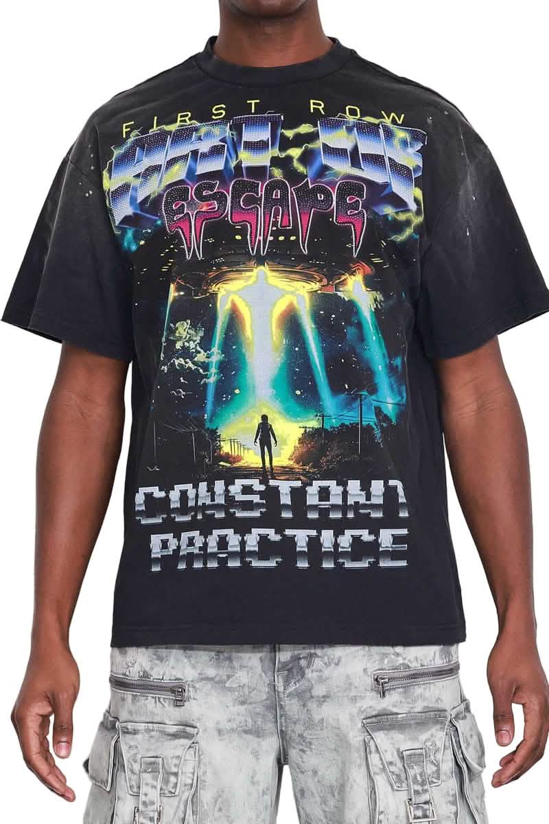 Embrace bold style with the First Row Art of Escape tee, featuring a heavy washed look that adds depth and character. Stone detailing enhances its rugged appeal, while subtle distressing on the hem delivers an edgy finish. This graphic tee is designed for those who dare to stand out with effortless attitude.