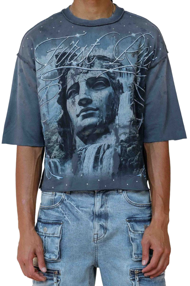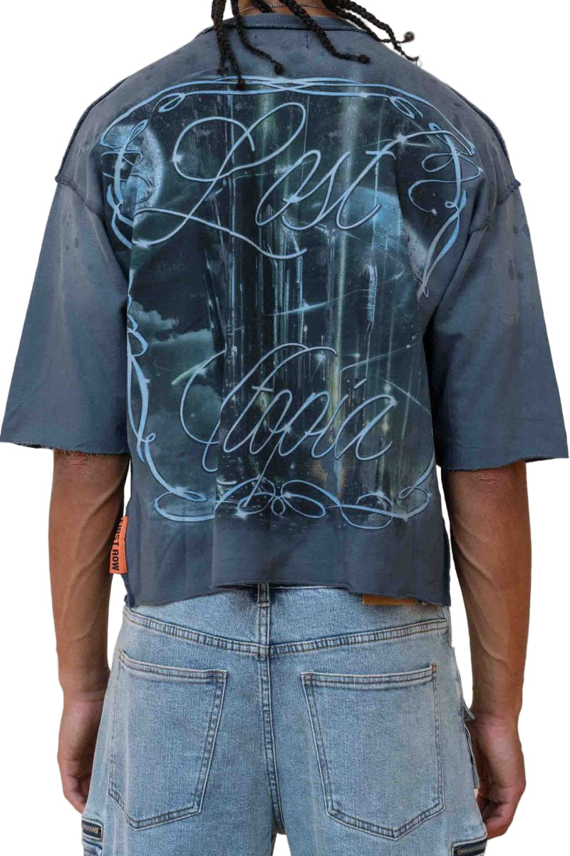 Cropped mini terry tee featuring rubber welding and stud detailing for an edgy, contemporary edge. Raw-edge hem and ribbed neckline deliver understated construction details that elevate the piece beyond basics. Lightweight terry fabric offers comfort without bulk, making this a versatile layering essential or standalone statement piece for premium streetwear styling.