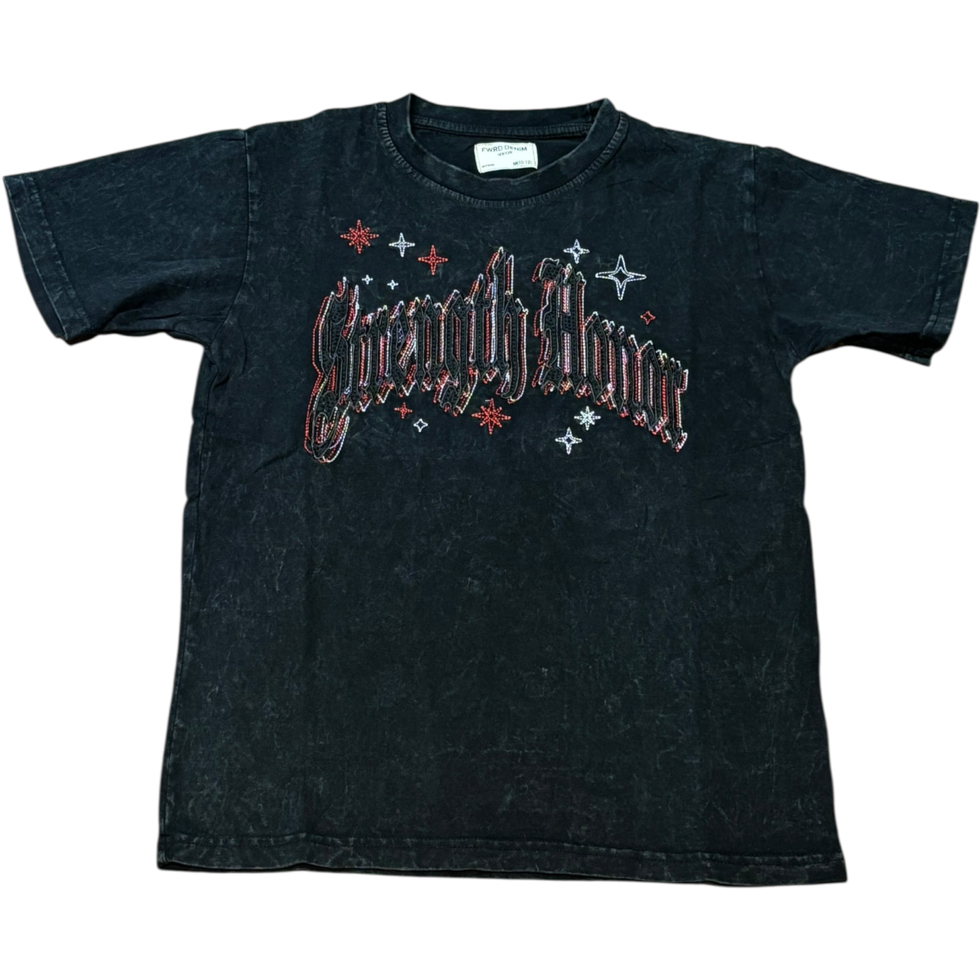 Introducing FWRD Strength and Honor, the perfect addition to your wardrobe. This acid washed tee features a striking black and red rhinestone design that exudes strength and honor. Made with quality materials, this shirt is a must-have for anyone looking to make a bold statement. Channel your inner confidence and stand out from the crowd with FWRD Strength and Honor.