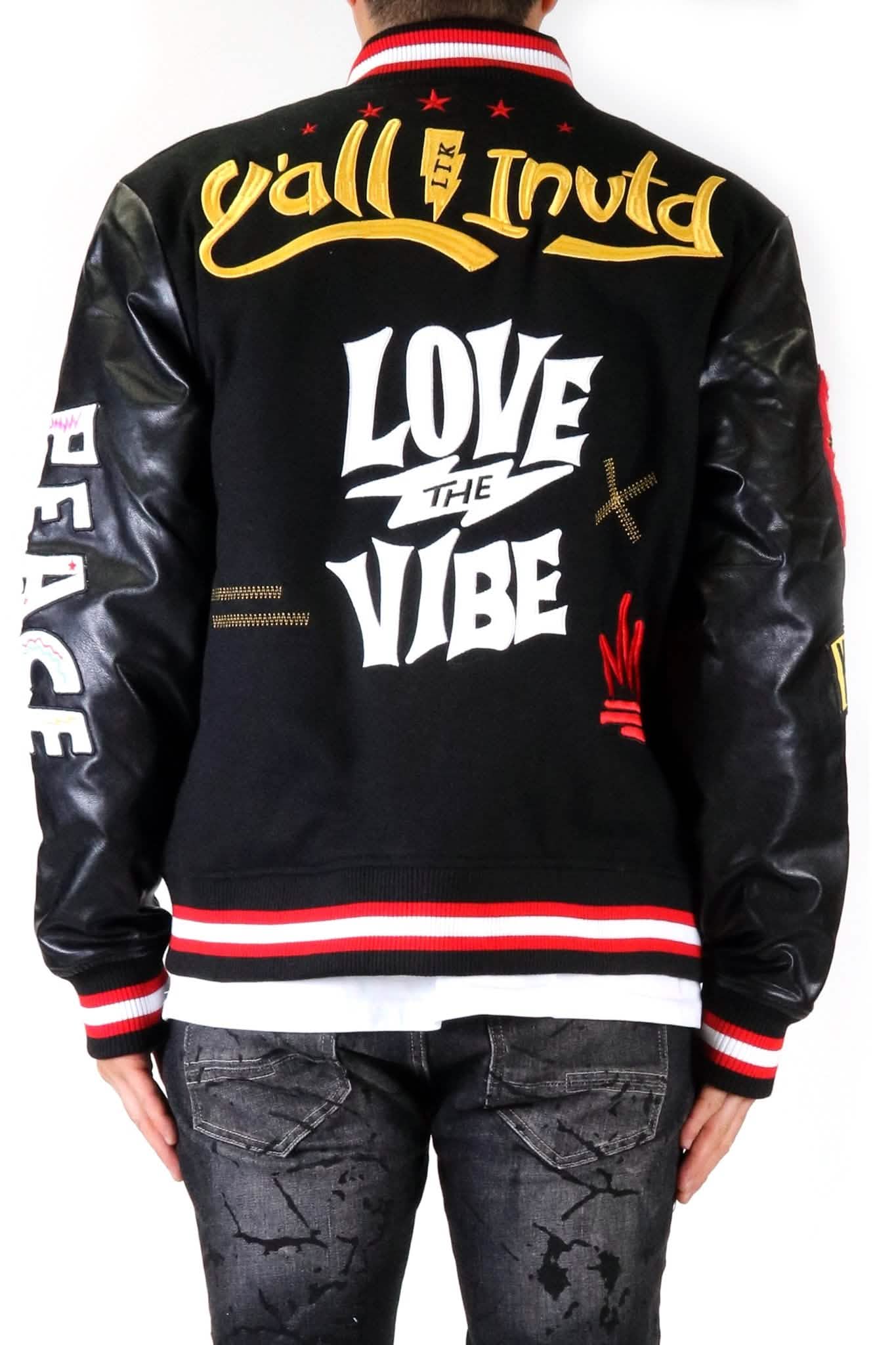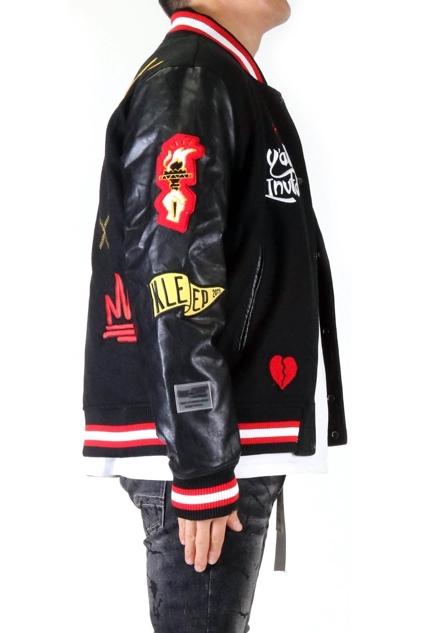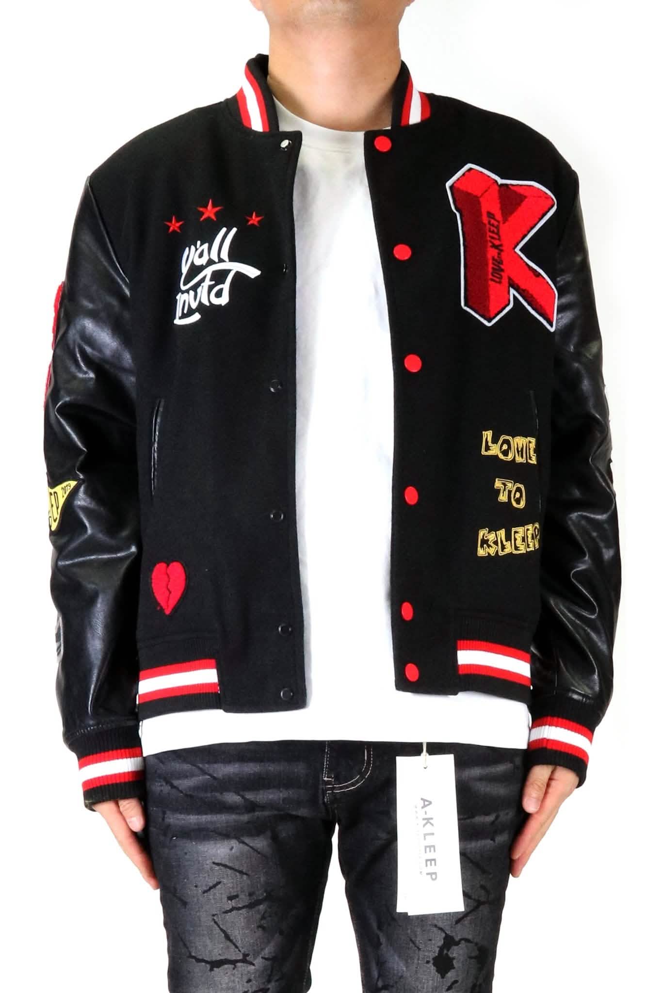 HALSTON Men's Melton Body with Faux Leather Sleeve Varsity Jacket