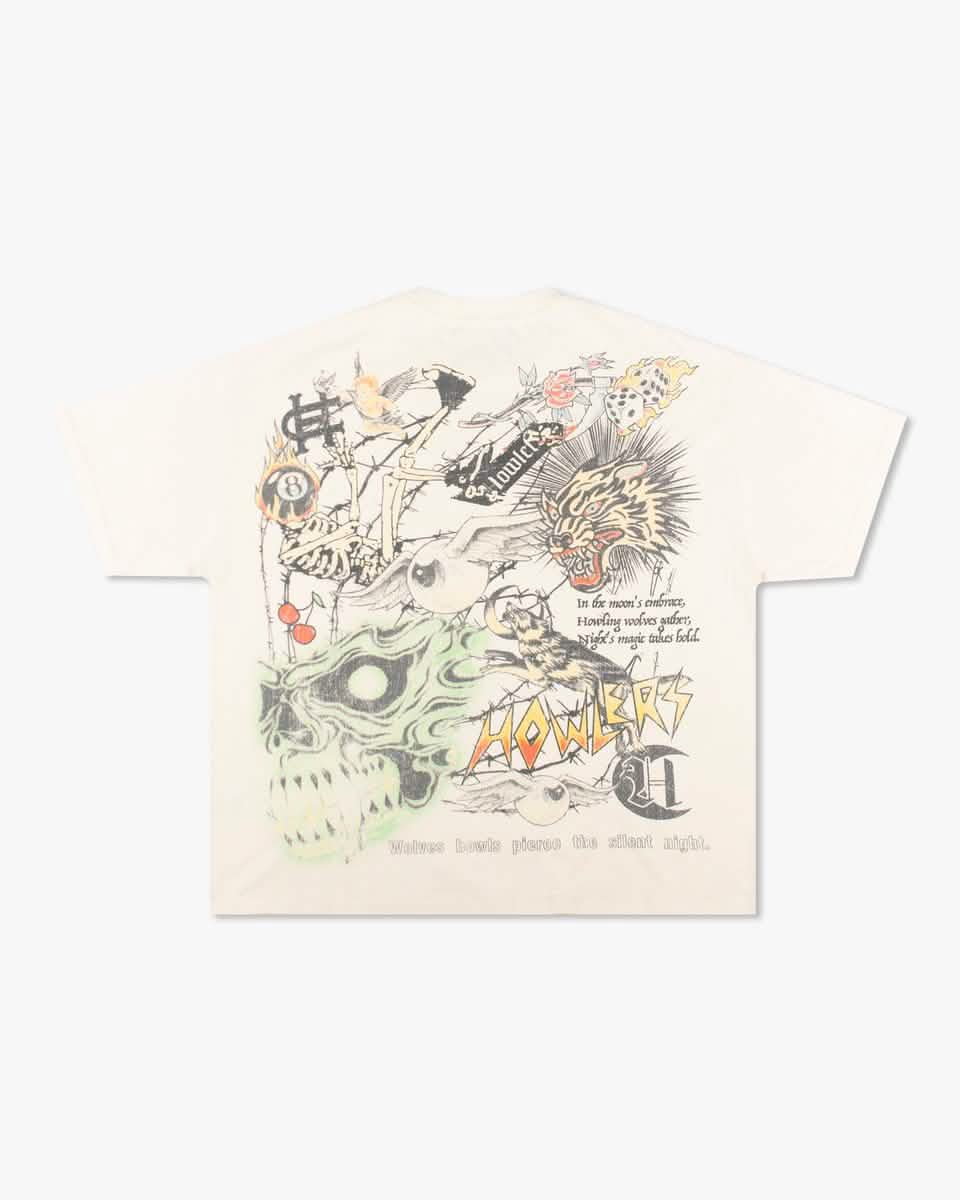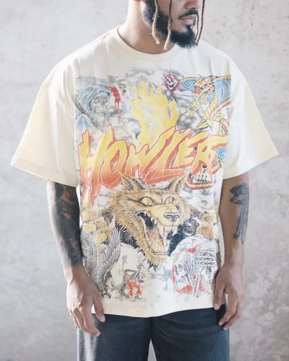 Crafted from 100% 7.5 oz cotton, the Howlers Club Magic Hour T-shirt offers a durable yet comfortable wear. Its garment-dyed fabric ensures a rich, lived-in color, while the boxy, cropped fit provides a modern silhouette. Featuring a jumbo print created with water-based ink, this shirt combines bold design with eco-friendly printing. The single stitch hem adds subtle detail, and its imported quality guarantees attention to craftsmanship. Ideal for those seeking a stylish, expert-level casual piece.